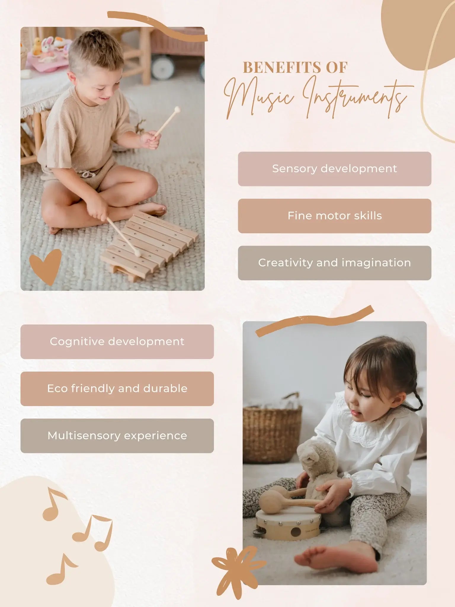 Our set of 2 egg shakers are made from high quality wood with an engraving of our beautiful musical print and offer a natural, rich sound that will enhance any musical performance.