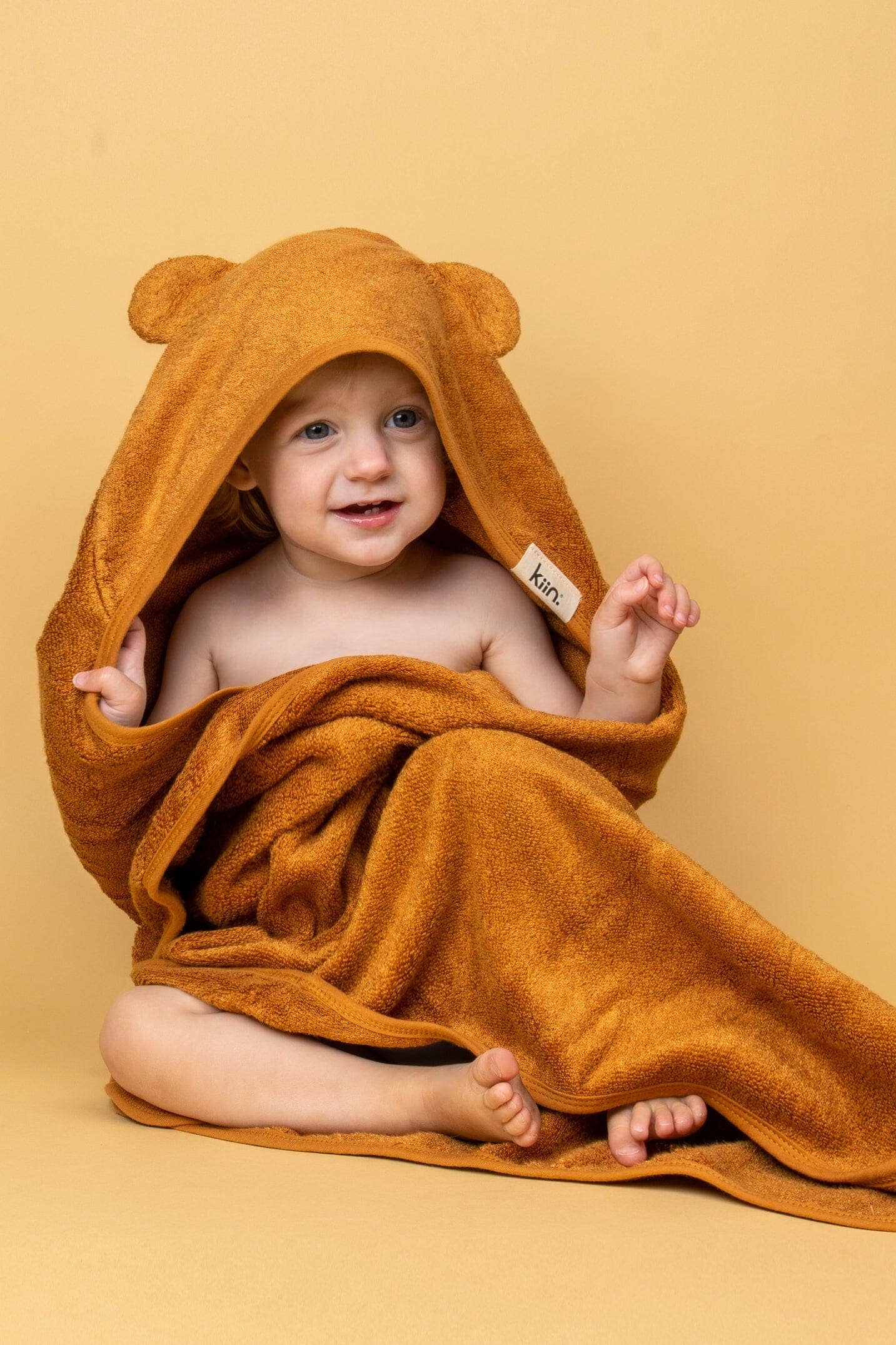 The Kiin Baby hooded towel is a bath time essential! We have designed this towel to be of the highest quality, and generously sized, so baby can grow into this towel and use well into childhood! It is both larger & thicker than most other baby towels on the market; made in a super soft, and luxuriously thick cotton & bamboo blend, and measuring 90cm x 90cm. Designed to wrap & dry your baby quickly, keeping them warm & irresistibly cute with little bear ears on the hood! Bamboo fabric is hypo-allergenic which is especially good for newborn or sensitive skin. Comprising of bamboo means our towels have excellent moisture wicking properties, meaning it is it far more water absorbent than regular towels, with a fast drying time. Size: 90cm x 90cm Material: 30% Cotton 70% Bamboo
