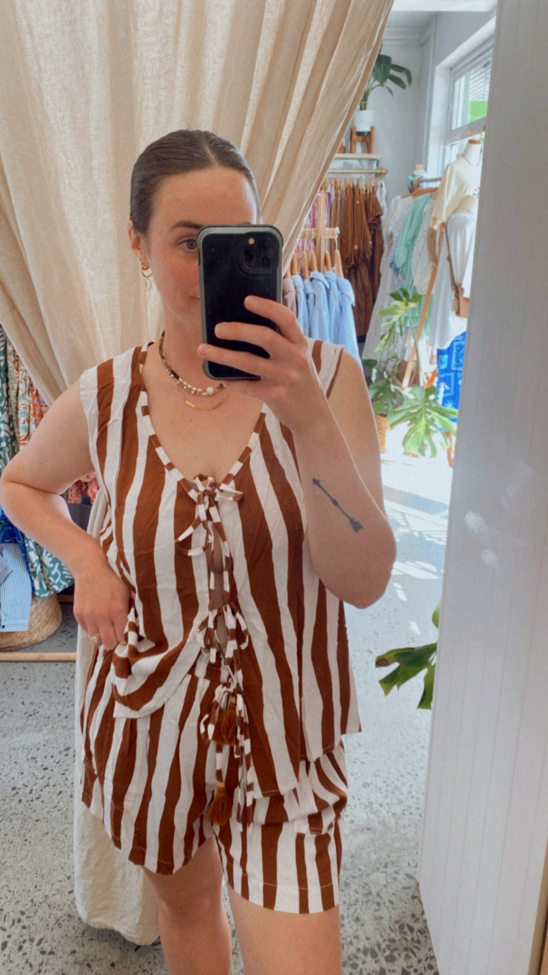 Model wears size M/L and is usually a size 10 top & 12 bottom.