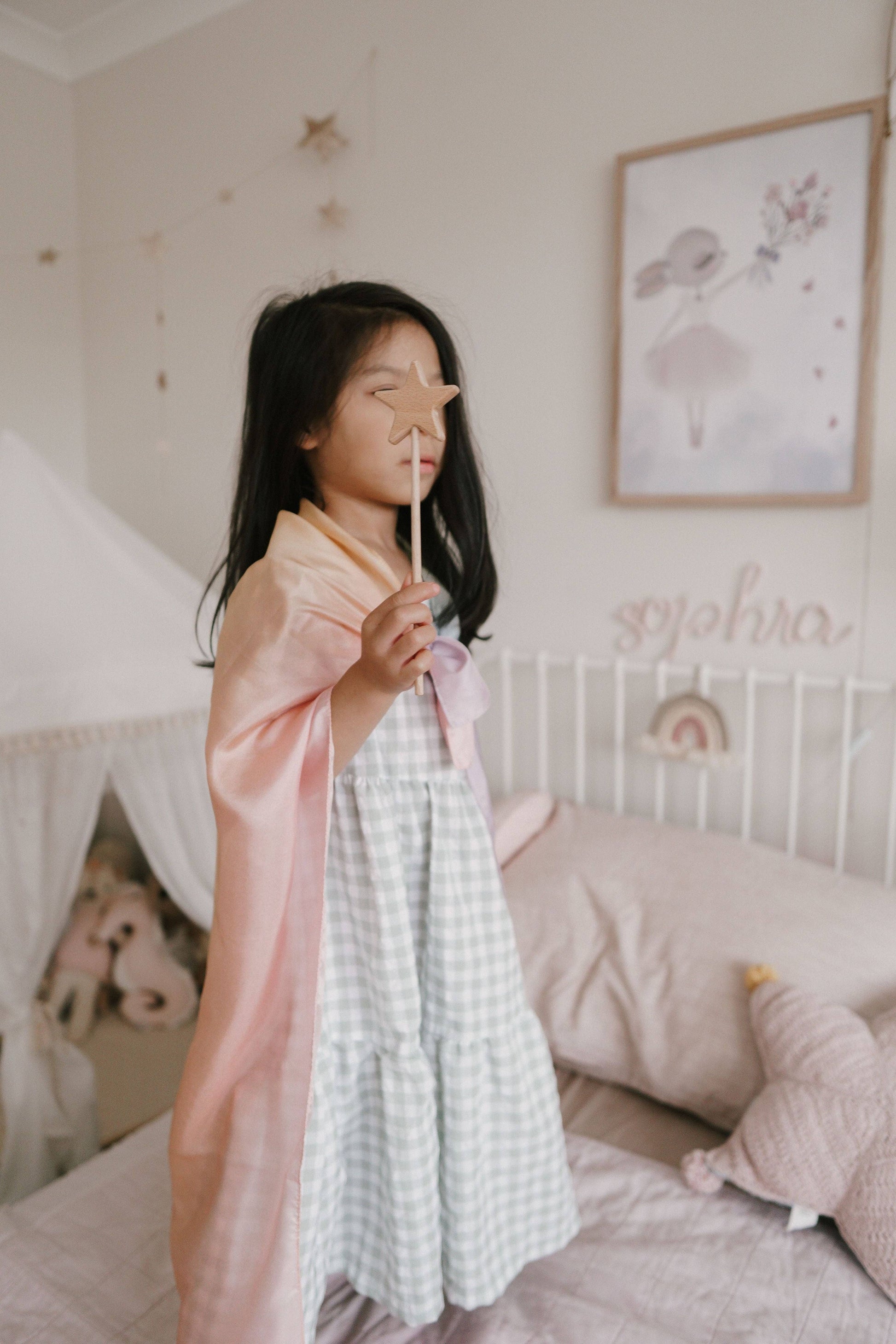 Our wooden magic wand is perfect to encourage imaginative play. This is the perfect piece to tie our playsilks onto and dance and twirl around. Pretend to be a concert performer, fairy or wizard and spend the day dancing through your own magical wonderland.