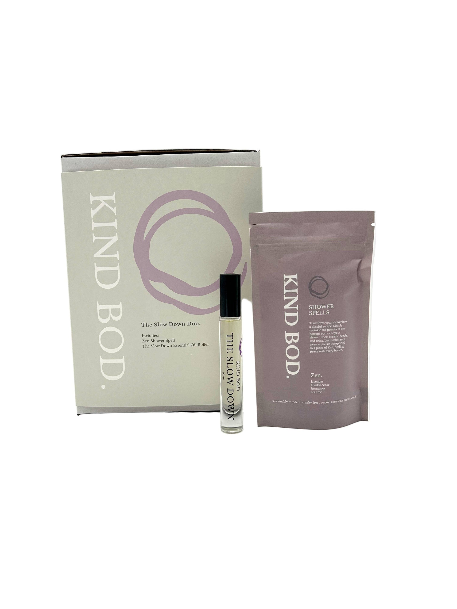 Need a break from the hustle? The Slow Down Duo is your personal invitation to chill. Packaged in a beautiful gift box, this calming duo pairs our soothing The Slow Down Essential Oil Roller with the tranquil Zen Shower Spell for the ultimate moment of relaxation.